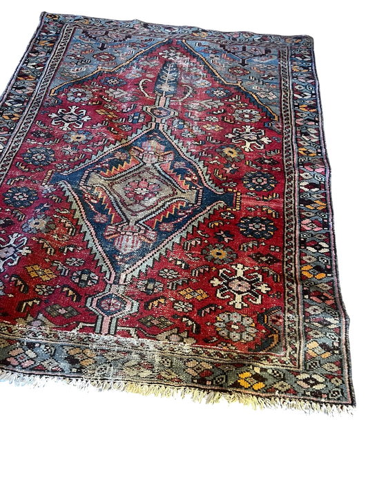 Antique Hand Knotted 19th Century Scatter Rug - 4' X 5.25'